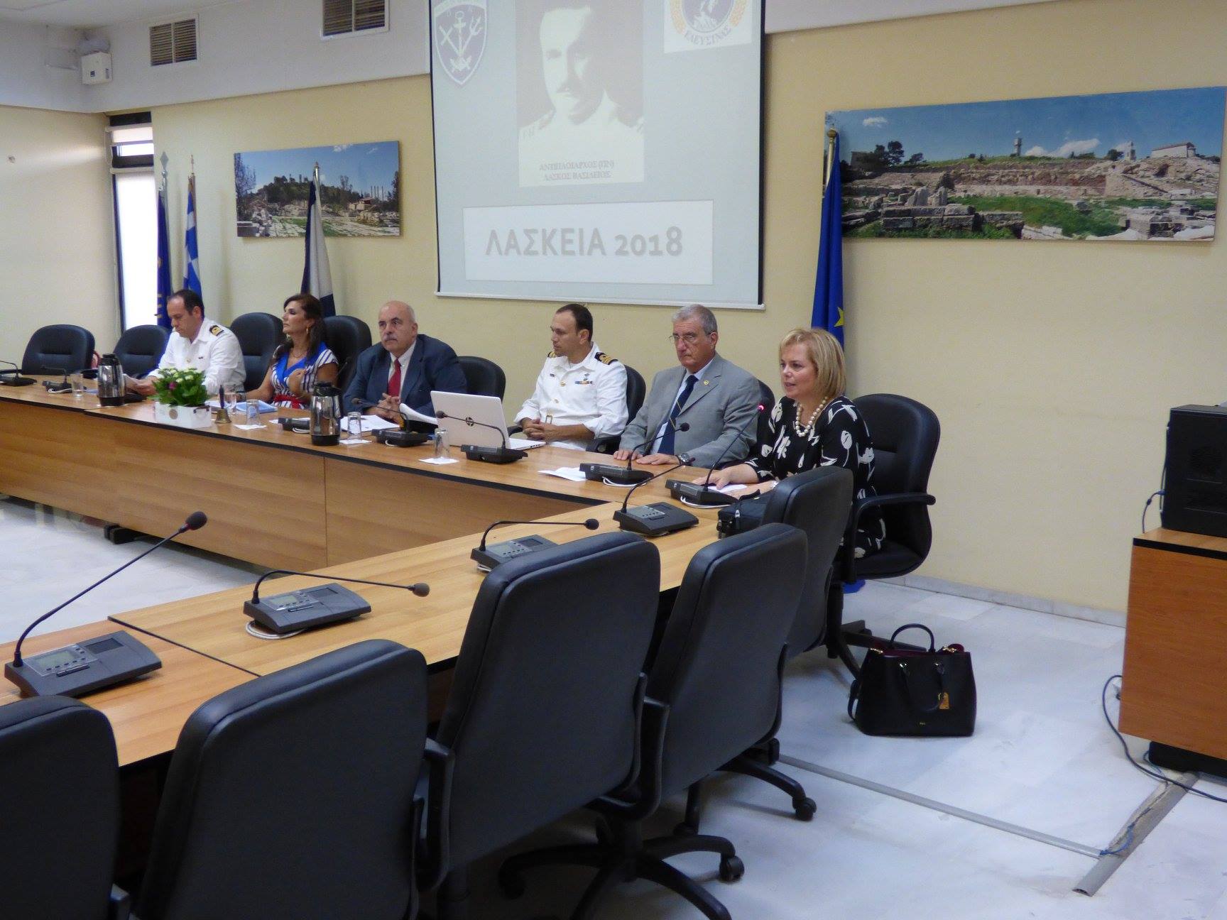 Ο Διευθυντής της Υπηρεσίας Ιστορίας Ναυτικού Πλοίαρχος Ι. Διαμαντάκης ΠΝ, που παρευρέθη στην ημερίδα, ευχαριστεί τον Δήμο Ελευσίνας για την φιλοξενία της φορητής έκθεσής της “ΜΕΘ’ ΟΡΜΗΣ ΑΚΑΘΕΚΤΟΥ” στις εγκαταστάσεις του Δημαρχείου και συγχαίρει την Πρόεδρο του Λαογραφικού Συλλόγου Ελευσίνας “ΤΟ ΑΔΡΑΧΤΙ” για την άριστη προετοιμασία και οργάνωση της ημερίδας προς τιμήν του Ελευσίνιου Ήρωα Αντιπλοιάρχου Βασιλείου Λάσκου Β.Ν.