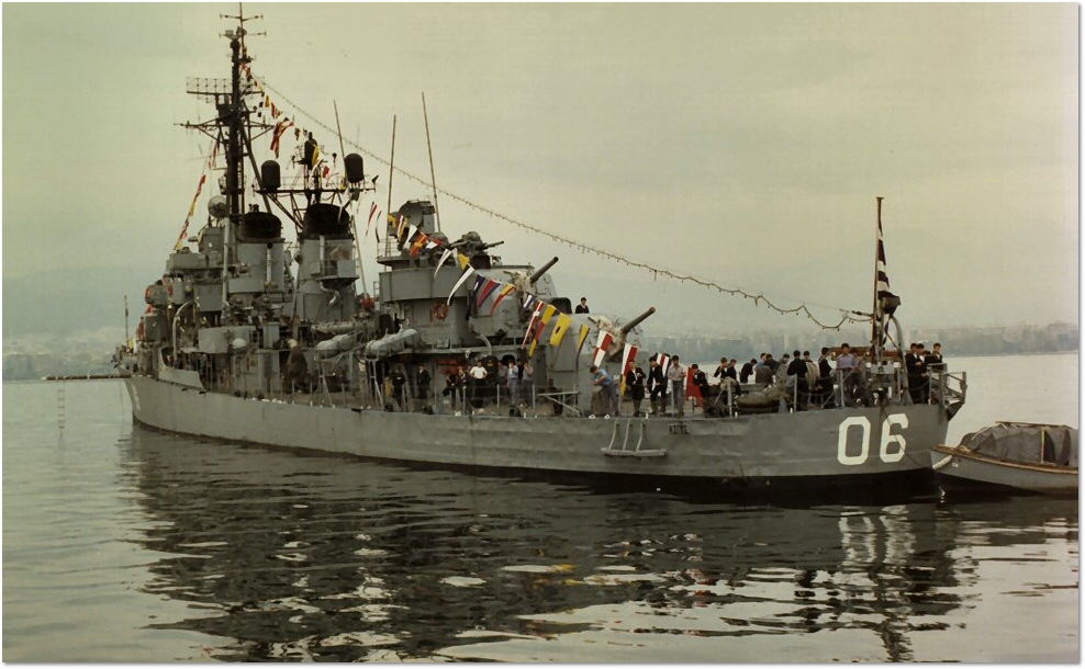 Ένα από τα τέσσερα του ιδίου τύπου, που παραχωρήθηκαν από τις ΗΠΑ κατά την περίοδο 1959-60. Ναυπηγήθηκε το 1942-43 και εκσυγχρονίσθηκε αργότερα. Η παραλαβή του έγινε στις 15 Σεπτεμβρίου 1959 στο Long Beach της Καλιφόρνιας των ΗΠΑ από τον Ανπχο Γ. Ψαλίδα. Του ιδίου τύπου: ΒΕΛΟΣ, ΛΟΓΧΗ και ΣΦΕΝΔΟΝΗ. Ανήκε στη δύναμη της Διοικήσεως Αντιτορπιλικών. Παροπλίσθηκε την 1η Φεβρουαρίου 1991.